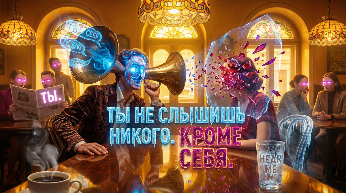 Эволюция не готовила нас к диалогу. Она готовила нас к выживанию. Пока собеседник говорит, ваш мозг сканирует: «Это друг или враг?», «Опасность?», «Что я получу?».
