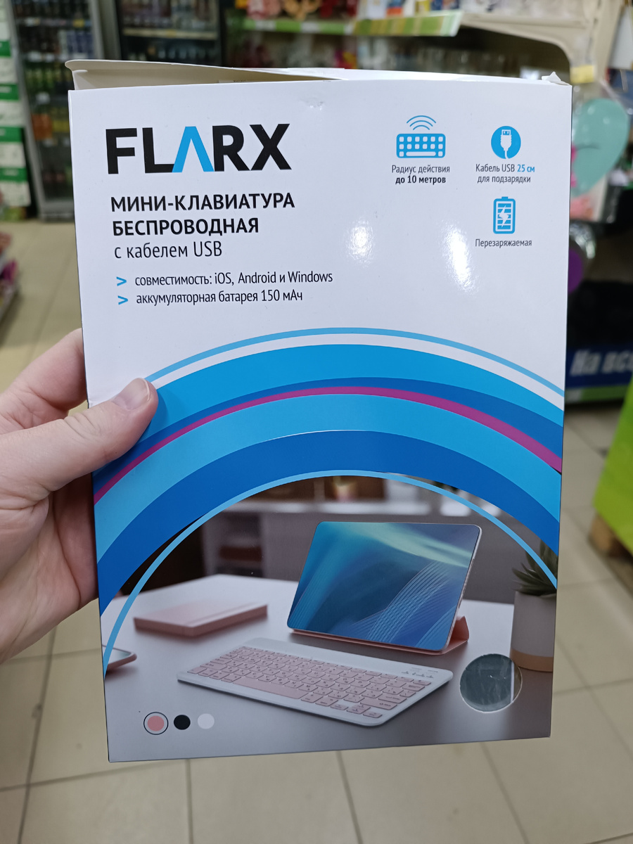 Сегодня в Фиксе привезли мини-клавиатуры беспроводные аккумуляторные, но эти чуть больше размером, чем моя черная была. Моя в дамскую сумочку влезает, а эта нет. Но все равно классная, посмотрите.