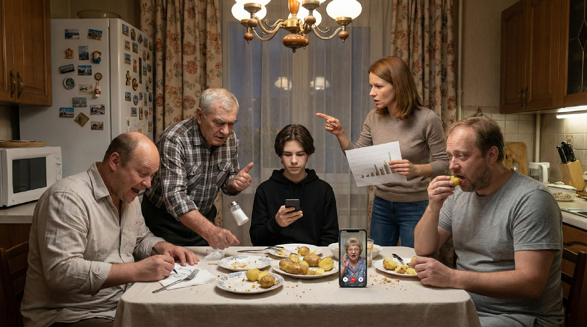 И вот представьте. Кухня, девять вечера. Дед требует инженерию. Жена с графиком зарплат. Тёща в громкой связи агитирует за хирургию. Дядя Толя рисует бизнес-план на салфетке. Все говорят разом. Битва при Ватерлоо за кухонным столом, а вместо Наполеона — мой сын в худи.