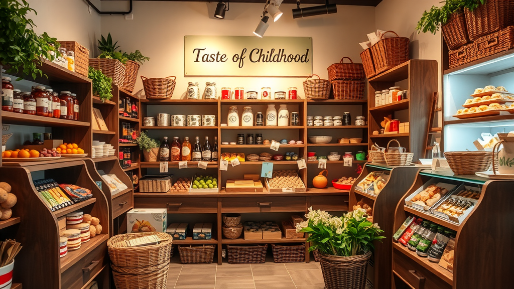 - Магазин «Вкус детства» (продукты): конфеты фабрики «Красный Октябрь», лимонад «Буратино», вафли «Артек».