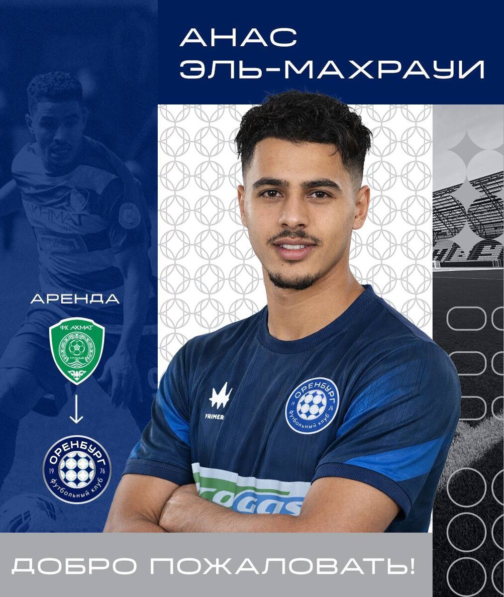🚨 Нападающий «Ахмата» Анас Эль-Махрауи перешел на правах аренды в футбольный клуб «Оренбург». Состав команды так же пополнил полузащитник Ренат Голыбин.