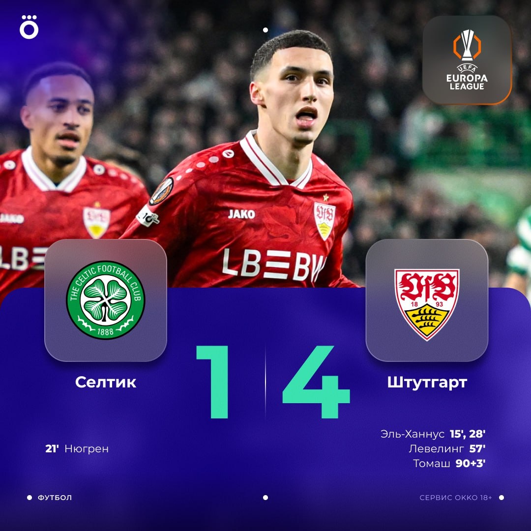 ⚽ «Штутгарт» справился с «Селтиком». Отличный задел у немцев перед ответкой.