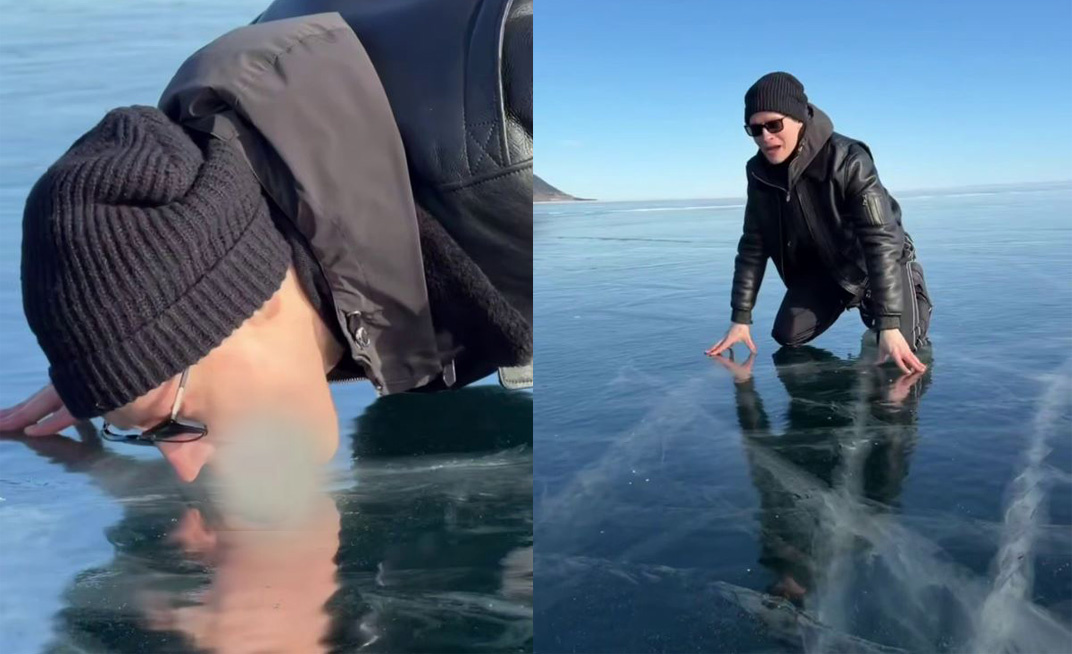 Извините, но на мой взгляд, это даже не кринж. Это уже какой-то новый уровень бытия, о который спотыкаются все известные определения. Великое озеро, священное для коренных народов Сибири, объект всемирного наследия, гордость страны. И по этому льду ползает человек в пуховике, встаёт на колени и старательно вылизывает поверхность языком. Зачем? А чтобы попробовать на вкус.