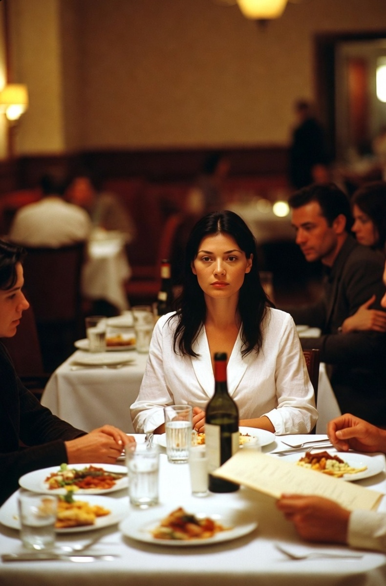 Ресторан был почти полон, но не шумный — тот приятный вечерний гул, когда говорят негромко, звенят бокалы, а официанты двигаются как тени. Их столик забронировали у окна, с видом на мокрую после дождя мостовую и отражения фонарей. Аня бросила сумку на стул, стянула пальто и только тогда, выпрямляясь, машинально повела взглядом по залу.