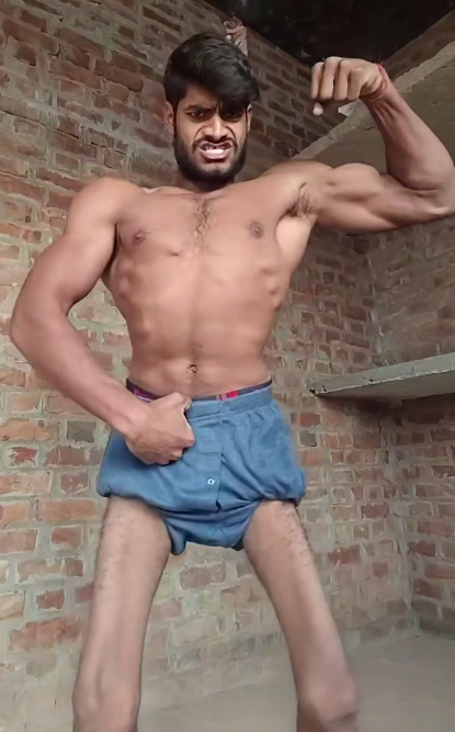 Парень берёт гантели, которые выглядят так, будто их не покупали, а вырубали зубилом из ближайшего карьера. Никакого хрома, никакой резины — чистый характер, чистый камень. Настоящий «натуральный хардкор». Дом — кирпич, без пафоса, без глянца, без «фитнес-студии с подсветкой». Просто пространство, стены и желание стать сильнее. И вот в этом вся суть. Верх у него реально мощный. Плечи раздуты, руки плотные, грудь прорисована. Он снимает рубашку — и там уже не просто «качался для фото», там видна работа. Причём работа не на дорогих станках, а на том, что есть. На гантелях, которые переживут и землетрясение, и три поколения атлетов. А ноги? Ноги худые, да. Контраст сильный. Но это не про «пропускал день ног», это про условия. Когда у тебя под рукой только пара тяжёлых гантелей и никакой стойки, никакой штанги, никакого тренажёра — ты качаешь то, что можешь прокачать. Верх проще загрузить в ограниченном пространстве. Низ требует базы, оборудования, веса. И вот тут начинается главный