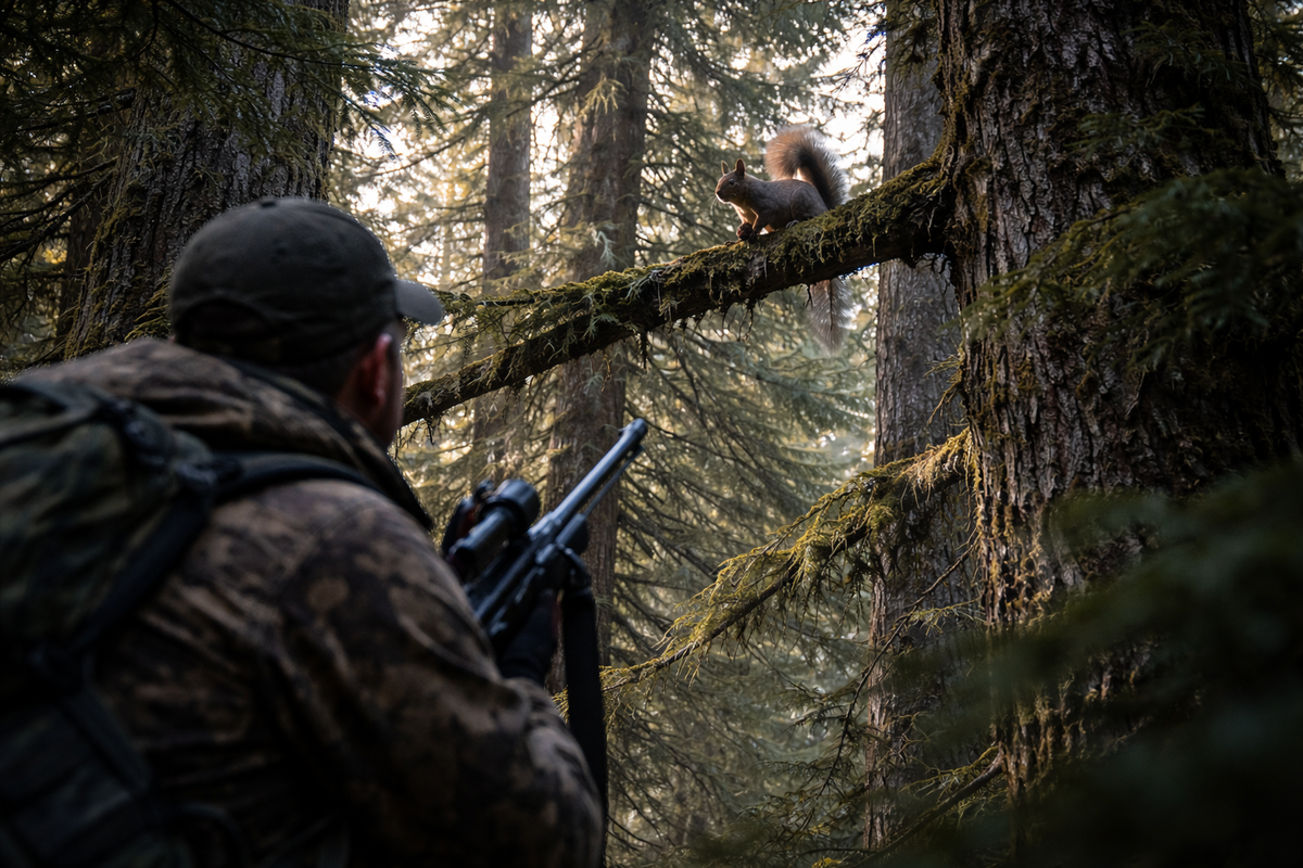 Кедровник никогда не бывает по-настоящему тихим. Даже в безветрие он живёт своим шорохом — сухая хвоя под сапогами, едва слышное постукивание шишек, скрип старых стволов. Но если встать и перестать двигаться, становится ясно: шум создаёт не лес — шум создаёт человек. И именно поэтому в промысле белки спешка — самый опасный враг. Серёга вышел затемно. В кедровник идут рано — пока мороз держит наст, пока следы читаются чётко, пока солнце не разогрело кору и не стерло мелкие отметки когтей. Рюкзак лёгкий, винтовка за спиной, шаг размеренный. Он никогда не спешит в начале. Если торопишься с первых минут — дальше будешь ошибаться. Первый след нашли у старого валежника. Маленькие чёткие отпечатки, зигзагом уходящие к стволу. Белка кормилась на земле, потом поднялась вверх. Серёга остановился, поднял голову. В кедровнике взгляд работает иначе: ты не смотришь вперёд — ты смотришь вверх и сквозь ветви. Малейшее движение, лёгкое покачивание хвои, крошка коры, упавшая с высоты — всё может выдать