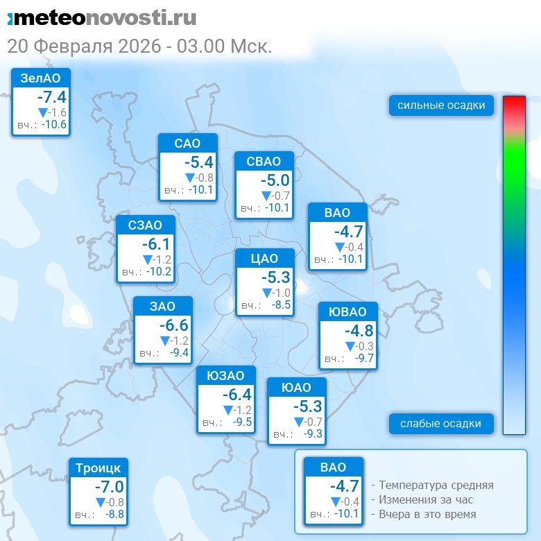 В 3:00 в Москве было от -7.6°C до -3°C, средняя температура -5.6°C #погода #Москва #зима #температура #20февраля #пятница
