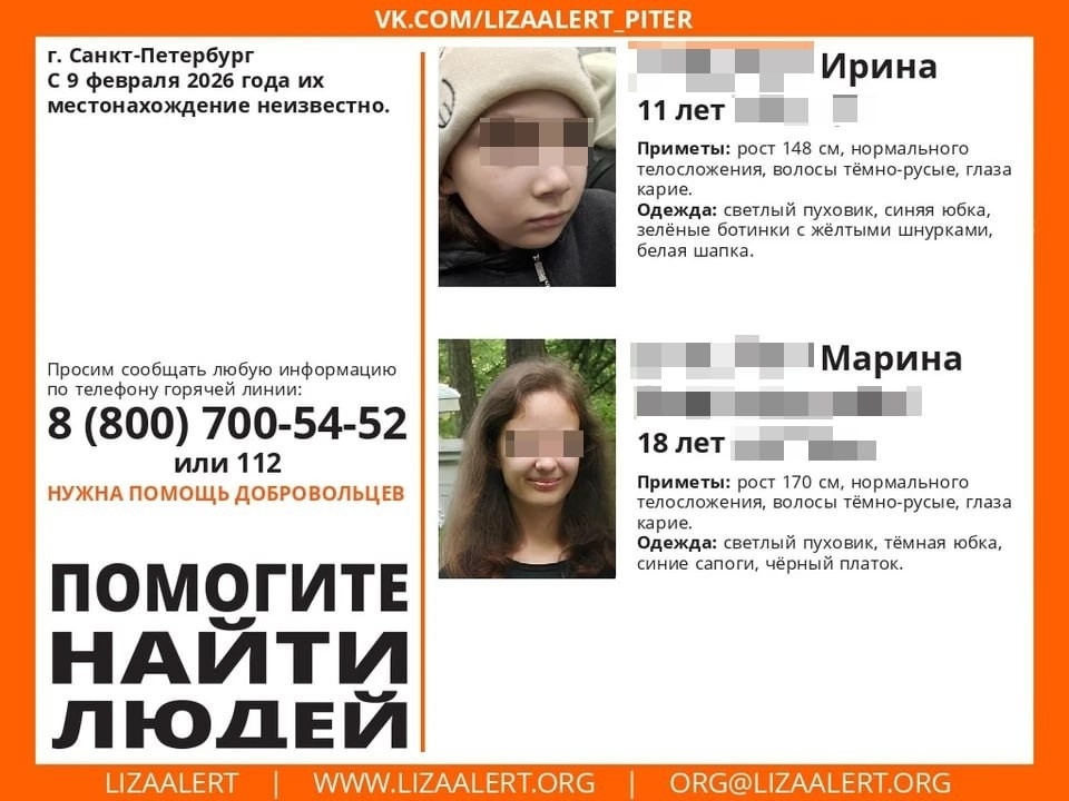 "Девочки под влиянием секты": завершены поиски двух пропавших в Петербурге сестер