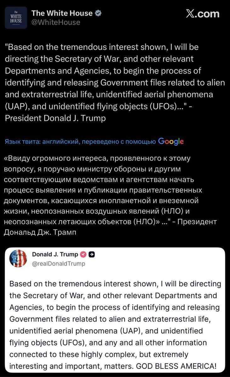 Никакого Эпштейна не существует, а вот гляньте, пришельцы весьма реальны. Чего только не сделаешь, чтобы спасти свою задницу #БелыйДом #Инопланетяне #ВнеземныеЦивилизации #Официально #Заявление ✈️ Будь с нами - поделись с друзьями: Хвитторная