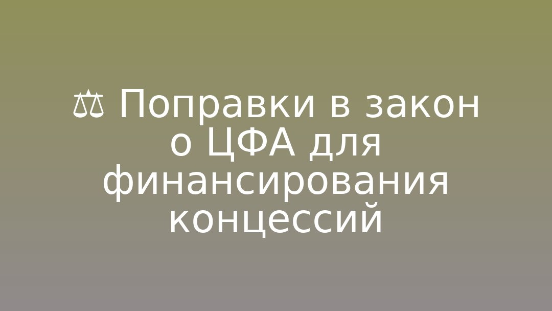 финансовые активы (ЦФА) на финансирование концессионных инфраструктурных проектов. Инициатива предполагает: - введение гарантии возврата средств инвесторов на случай дефолта концессионного проекта; - налоговые льготы, сопоставимые с режимом для эмитентов и инвесторов классических ценных бумаг. В качестве гарантов рассматриваются ВЭБ.РФ и администрации регионов. По оценкам инициаторов, через ЦФА можно привлекать до нескольких десятков млрд руб. в перспективе нескольких лет.