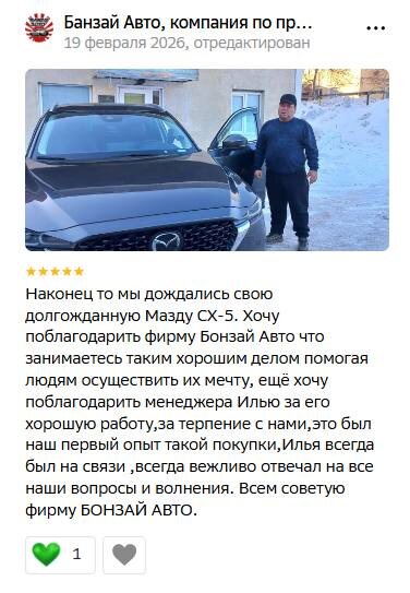 ✅Отзыв от Светланы и Андрея из г. Прокопьевск. Привезли новую Mazda CX-5. Пост покупки: https://dzen.ru/media/banzai_auto/pozdravliaem-svetlanu-i-andreia-iz-g-6916e4f0f2a7c446e9fc0b93 Благодарим Вас за отзыв. Пусть машина дарит только положительные эмоции! #отзывы Еще больше отзывов ЖМИ ❗️Сделку ведёт Илья🧑💻 👉🏻Илья Ч: 8-984-155-67-03 👉🏻Мы в МАХ - подпишись 👉🏻Подписаться на ТГ Банзай Авто