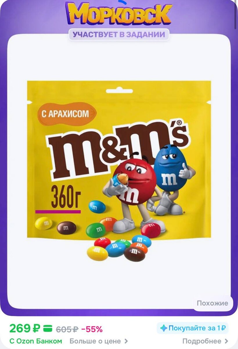 😀😀😀Конфеты M&M's драже с арахисом и молочным шоколадом для компании, 360 г