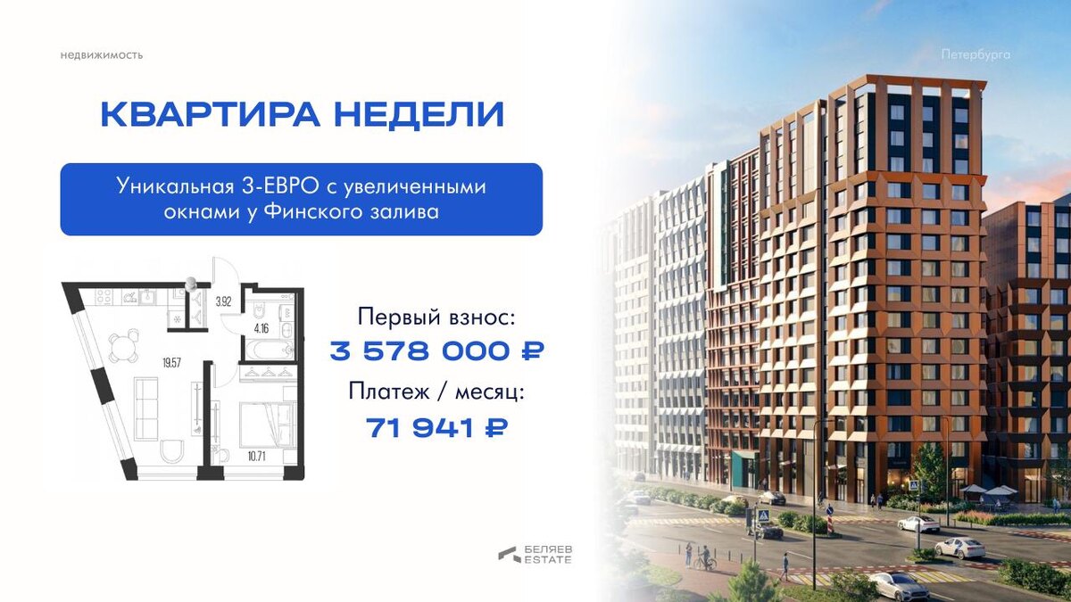 19,6 м² света и пространства. Три окна в одной комнате, это реально меняет ощущение от квартиры. Евротрешка у Финского залива, Василеостровский район. Отделка технобокс — грязные работы уже сделаны, можете сразу воплощать свои идеи. Расчёт (по семейной ипотеке): ▪️ первый взнос — 3 578 000 ₽ ▪️ ежемесячный платёж — 71 941 ₽ Для кого эта квартира: 🌊 семей, которые хотят жить у воды на Васильевском 🧑🎓 родителей, покупающих студенту просторное жильё для старта в Петербурге 🌅 тех, кто ценит естественный свет и панорамные окна 🛠️ тех, кто хочет сделать ремонт под себя без лишних затрат на черновые работы Такие планировки быстро разбирают. 👉🏻 Оставьте заявку — покажем эту квартиру или похожие варианты