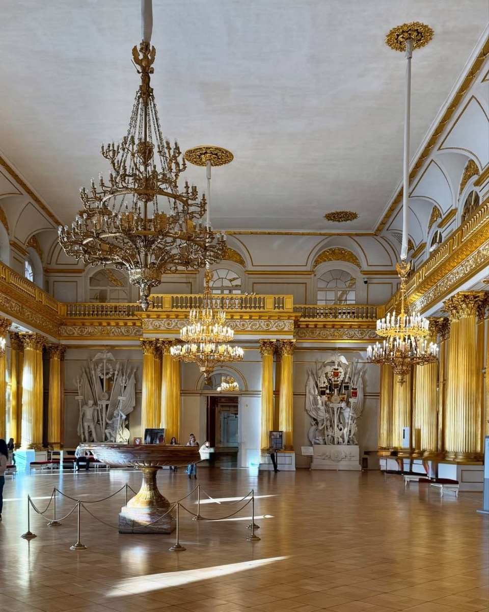 😎Этот зал - один из самых парадных и больших в Эрмитаже. Создан в конце 1830-х годов после пожара в Зимнем дворце по проекту архитектора Василия Стасова. 😎Название зала связано с символикой государственной власти. На колоннах и вдоль стен размещены изображения гербов всех губерний и областей, входивших в состав Российской империи в XIX веке. 📸 natalie_schu Петербургские истории 📝 Лучшие места и истории 👼