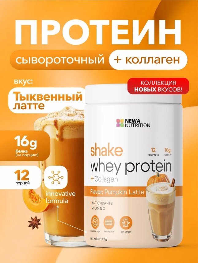 Помните то ощущение уюта, когда вы сидите в кофейне с чашкой тыквенного латте, за окном шуршит листва, а в животе урчит от удовольствия? А потом приходит осознание: "Боже, сколько же там сахара и калорий..." 😅 Знакомьтесь — идеальная альтернатива без грамма вины! Протеин Тыквенный Латте от NEWA Nutrition 🎃💫 Это не просто протеин. Это коллаборация уюта и пользы: ✅ Сывороточный протеин + Коллаген — мощный дуэт для мышц, кожи, суставов и связок.