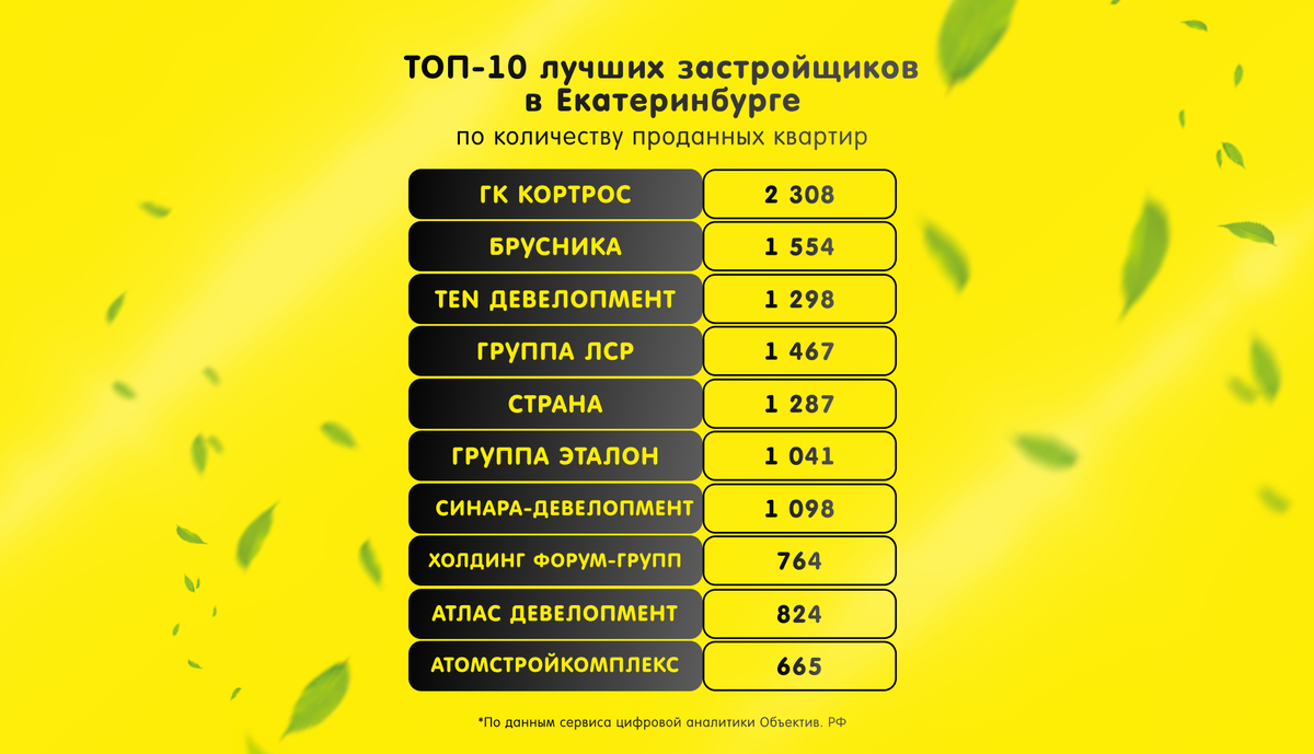 Сервис «Объектив.РФ» подвел итоги: за прошлый год в Екатеринбурге купили 25 129 квартир в новостройках. Давайте узнаем, кому доверяют большинство екатеринбуржцев, и разберемся, почему.