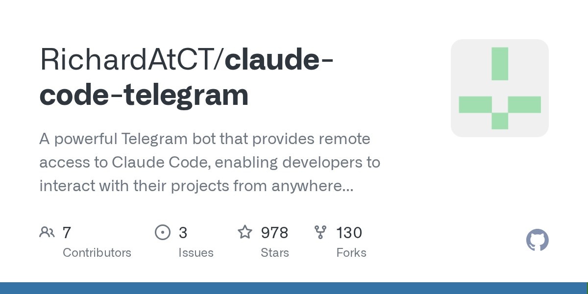 Представляю крутой проект — Telegram-бот, который позволяет работать с Claude Code прямо из мессенджера. Забудь об открытии терминала и переключении между окнами! Просто общайся с ботом как с коллегой: он анализирует твой код, помогает добавить обработку ошибок, запускает тесты и даже читает структуру проекта. Есть поддержка GitHub, уведомления о событиях и надёжная защита с аутентификацией и изоляцией директорий. Отличный инструмент для тех, кто хочет программировать и поддерживать проекты на ходу — достаточно Telegram на телефоне или компьютере. #программирование #telegram #бот #AI #разработка #python #opensource #ClaudeCode https://github.com/RichardAtCT/claude-code-telegram https://vlad1kudelko.github.io/