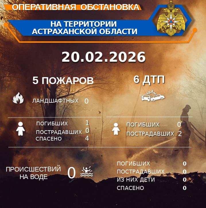 Оперативная обстановка на территории Астраханской области по состоянию на 00:00 20.02.2026.