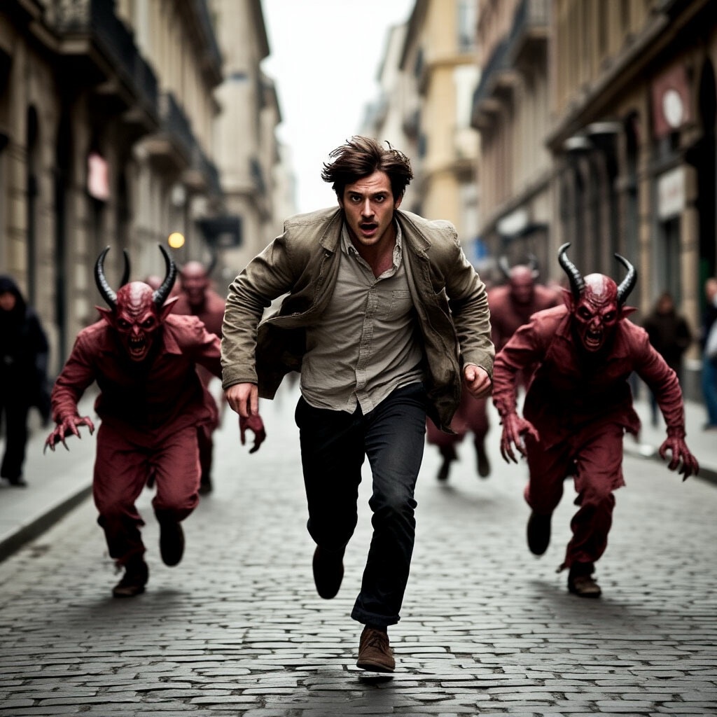 Третий возник справа — низкий, скрюченный, с короткими рогами и видом, будто по нему проехал автомобиль, с пальцами, похожими на паучьи лапки. Четвёртый — слева, высокий, с глазами-щёлочками и острыми, как бритва, зубами. Они окружали его, шипя, хихикая, протягивая когтистые пальцы и отправляя воздушные поцелуи.