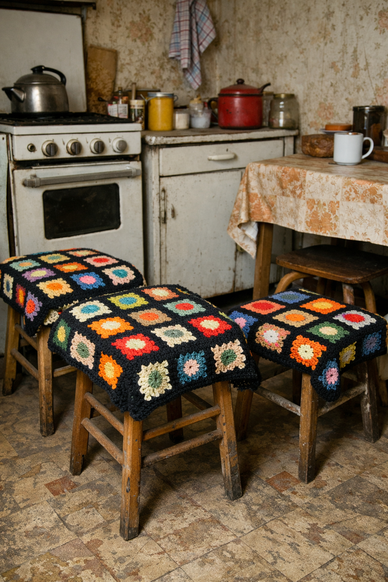 Бабушкин квадрат. У многих сразу картинка: кухня, табуретки, накидки из остатков пряжи.