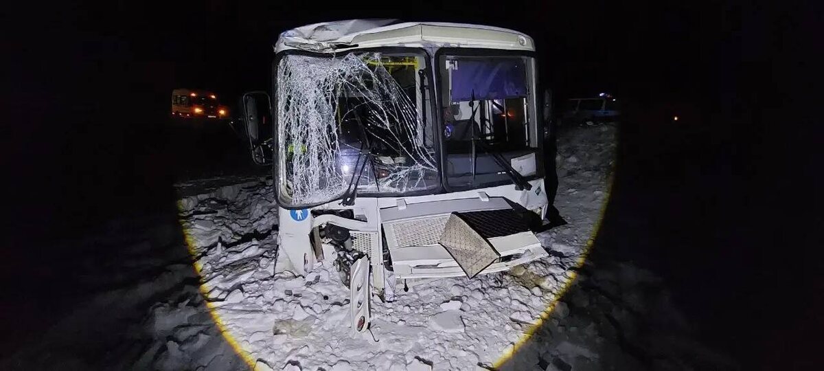 По предварительным данным, водитель автомобиля «Мазда», выезжая со второстепенной дороги, не предоставила преимущество и допустила столкновение с рейсовым автобусом ПАЗ. 🔻 Автобус с 17 пассажирами после столкновения съехал в кювет. В результате аварии водитель «Мазды» и её пассажир с тяжёлыми травмами доставлены в медицинское учреждение. Фото: Омская полиция