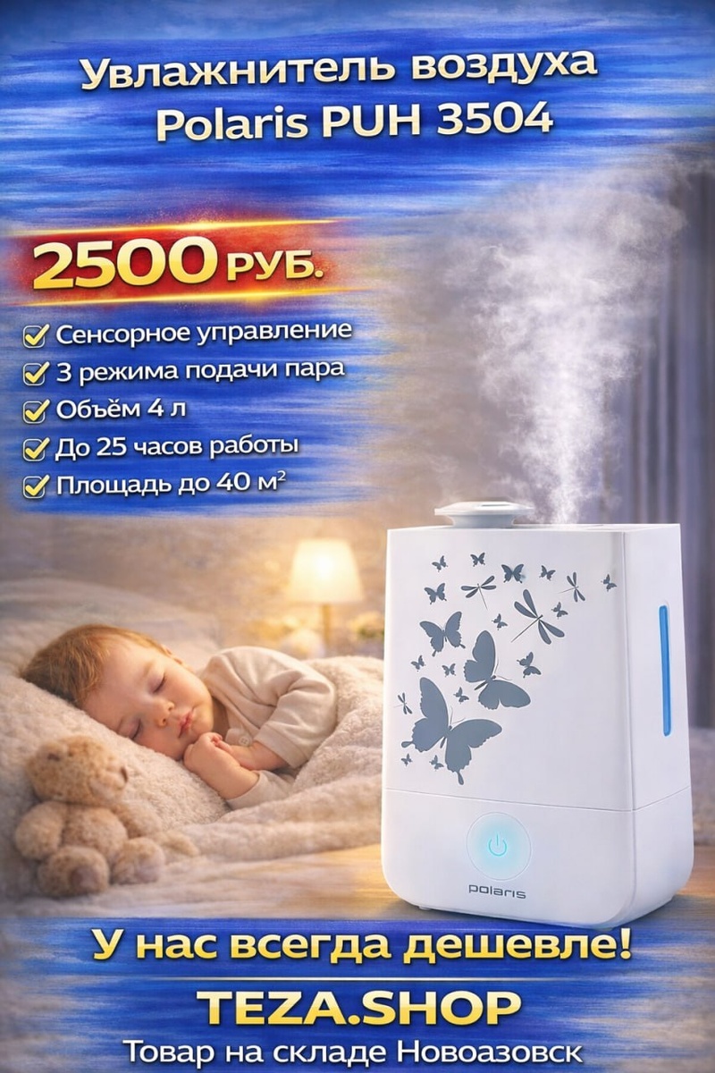 🔥 Спеццена — всего 2500 руб! Создайте комфортный микроклимат дома — лёгкое дыхание и здоровый сон каждый день 🍀 Преимущества модели: ✅ Современная сенсорная панель управления ✅ 3 режима подачи пара ✅ Вместительный резервуар — 4 литра ✅ LED-индикатор работы ✅ Индикация низкого уровня воды ✅ Автоматическое отключение без воды ✅ Расход воды до 350 мл/ч ✅ До 25 часов непрерывной работы ✅ Для помещений до 40 м² ✅ Мощность — 30 Вт 📣 У нас всегда дешевле! 🗺 TEZA.SHOP 🛒 В наличии на складе (Новоазовск) 📞 +7 (949) 301-08-41