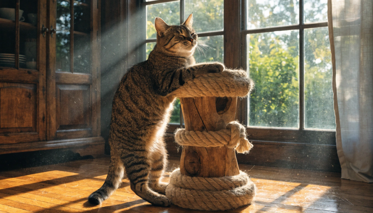 Зайдите в зоомагазин с намерением купить «что-нибудь для кота» — и выйдете с чеком на пять тысяч. Когтеточка, домик, лежанка, игрушки, миски с подставкой, фонтанчик для воды. Всё выглядит нужным. Часть из этого кот проигнорирует в первый же день. За двадцать лет я наблюдала одну и ту же картину: дорогой игровой комплекс стоит нетронутым, а кот спит в картонной коробке из-под обуви. Потому что коту нужна не красивая мебель — ему нужна правильно устроенная среда. И большую её часть можно создать из того, что уже есть дома. Кот оценивает квартиру не по площади, а по высоте. Чем больше уровней он может занять, тем богаче его территория. Верхушка шкафа, полка под потолком, подоконник — это его маршруты и точки контроля. Кот, у которого есть три уровня по вертикали, живёт насыщеннее кота с огромной пустой квартирой без единой высокой точки. Самое простое решение — открыть верхние полки и положить туда старый плед или свёрнутое полотенце. Ничего покупать не нужно. Если шкаф слишком высокий и