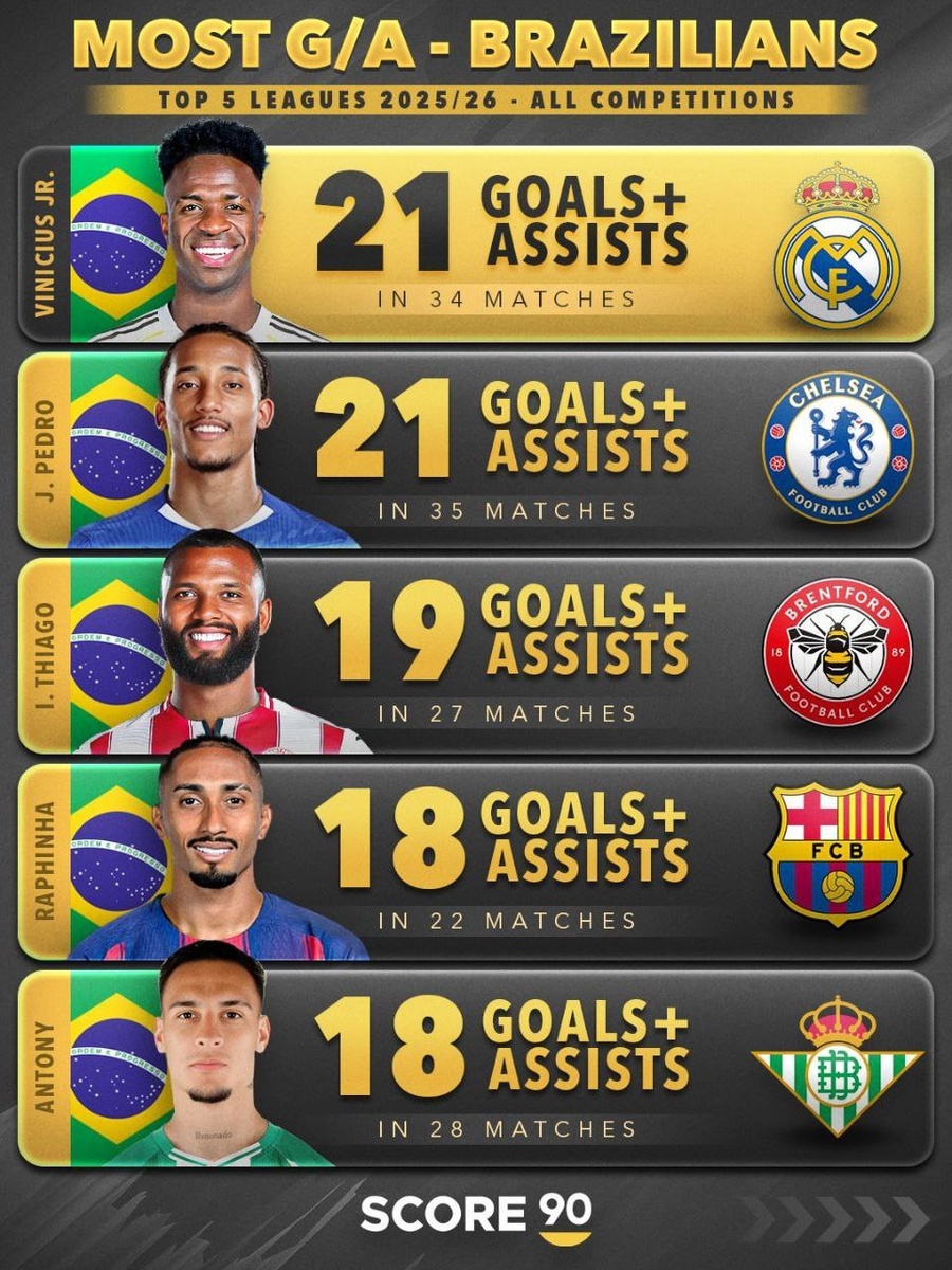 Лучшие бразильцы в этом сезоне по системе гол+ассист