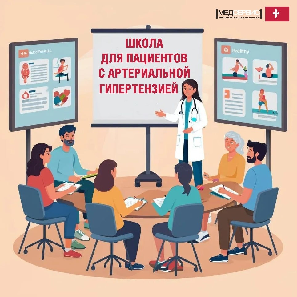 ❗️ Мы напоминаем, что каждый вторник в ООО «Медсервис» проходит школа для пациентов с артериальной гипертензией. ☝🏻На лекциях мы обсуждаем👇🏻 📌 основы контроля артериального давления: как правильно измерять и вести дневник самоконтроля; 📌 принципы здорового питания при гипертонии: рекомендации по снижению потребления соли, выбору продуктов и составлению рациона; 📌 физическую активность: какие нагрузки допустимы и полезны, а каких стоит избегать; 📌 факторы риска: стресс, курение, алкоголь и их влияние на давление; 📌 медикаментозную терапию: зачем нужны препараты, как их принимать и почему важно соблюдать назначения врача; 📌 первые признаки гипертонического криза и алгоритм действий в экстренной ситуации. ☝🏻 Наши специалисты— ответят на все ваши вопросы и дадут персональные рекомендации. 👉🏻 Следующая встреча 24 февраля ☎️ Предварительная запись по многоканальному телефону 8 800 250 3290 добавочный номер 9., а также по стационарному телефону ГПНС и дочерние общества 83-83 💕