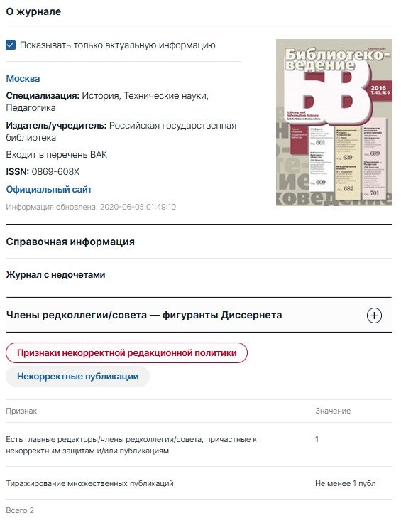 Москва Специализация: История, Технические науки, Педагогика Издатель/учредитель: Российская государственная библиотека Входит в перечень ВАК https://www.dissernet.org/magazine/bibliotekovedeniye