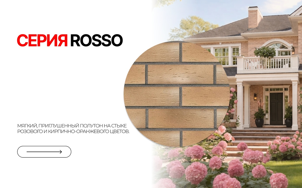 Между смелым красным и нежным розовым есть особая территория изысканного компромисса, где тепло не доминирует, а нежность имеет характер. Это коллекция ROSSO. Мягкий, приглушённый оттенок на самом стыке кирпичного и розового, не кричащий, тонкий, ведущий диалог со светом и пространством. ROSSO - дипломат в мире цвета. Он умеет быть оригинальным, не становясь экстравагантным, и деликатным, не теряясь. Для фасада: Дом, одетый в ROSSO, выглядит не просто красиво — он выглядит приветливо. Он лишён строгости и чопорности, вместо этого излучая открытость и лёгкость. Цвет великолепно играет в лучах закатного солнца, наполняясь золотым сиянием, а в пасмурный день сохраняет внутреннее тепло, напоминая о спелом персике или выдержанном вине. Для интерьера: Здесь ROSSO раскрывается как гений гармонии. Он создаёт невероятно уютную, но при этом светлую и современную среду. Это идеальный выбор для гостиной, где важны и беседы, и отдых, для кухни, где готовят с любовью, или для спальни, настраивающе