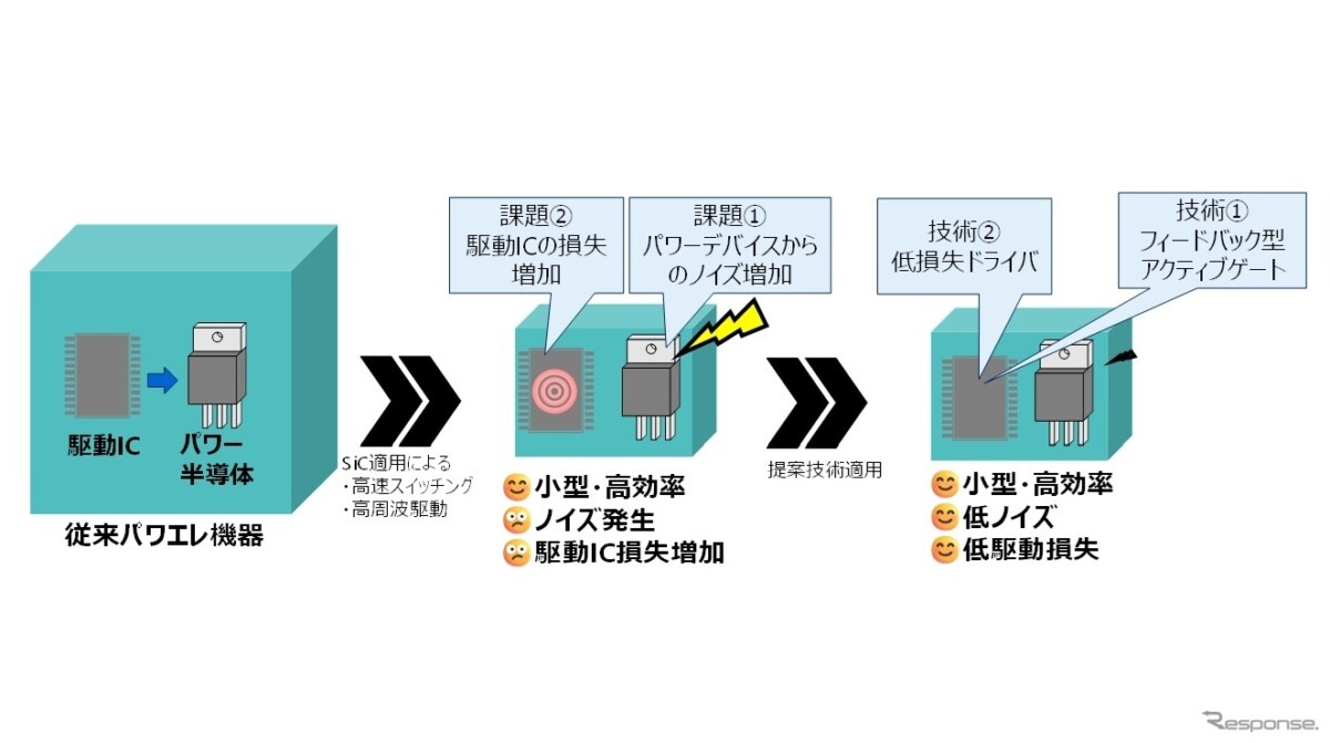 Японская компания Toshiba сообщила о создании сразу двух решений для gate-драйверов нового поколения. Разработка нацелена на то, чтобы раскрыть потенциал силовых приборов на карбиде кремния (SiC) и тем самым сделать системы электропитания более экономичными и компактными. В первую очередь речь идет об инверторах электромобилей и оборудовании центров обработки данных, где потери и габариты критичны. Читать на сайте: Toshiba представила два решения для SiC-драйверов нового поколения: потери в инверторах электромобилей снизят до 84% SiC-устройства давно ценят за высокую скорость переключения: по этому параметру они заметно превосходят классические кремниевые аналоги и способны ощутимо снижать энергопотери. Но у такой скорости есть обратная сторона: инженерам приходится искать баланс между уменьшением потерь и ростом шумов, которые появляются при агрессивных режимах работы. Первое решение Toshiba получило название Feedback type active gate Driver technology. Его ключевая особенность — функ