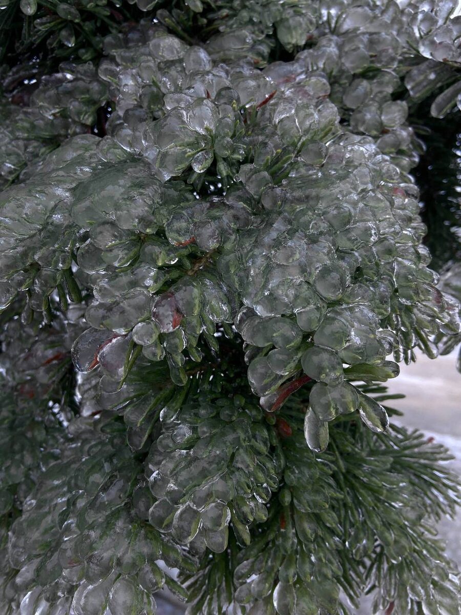 В городе Гуково ледяной дождь превратил растения в настоящее произведение искусства