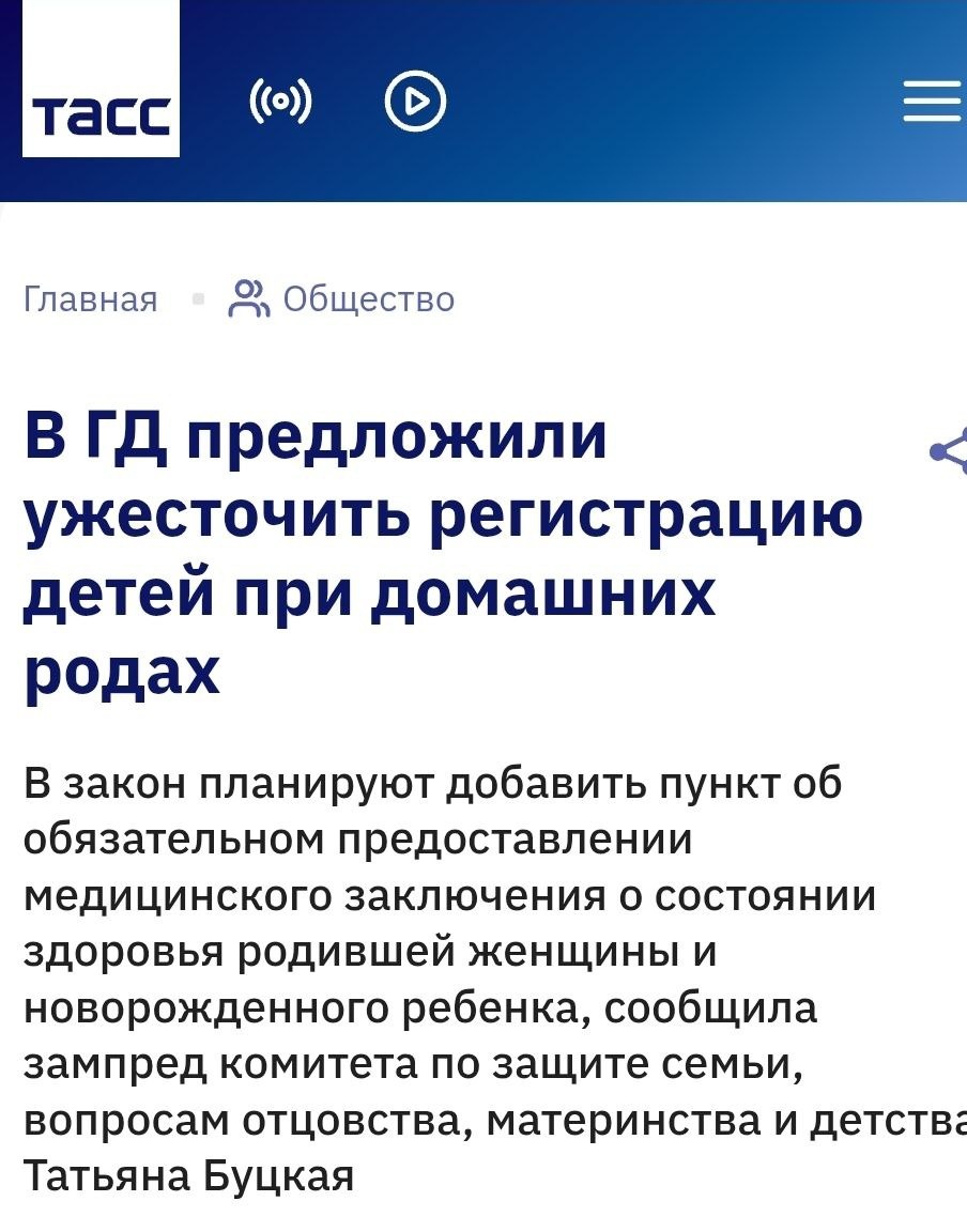 ЗАГС самого ребенка и заявление свидетеля, присутствовавшего при родах, а медосвидетельствование не обязательно. При родах вне роддома женщина и ребенок лишаются своевременной квалифицированной медицинской помощи. Принятие законопроекта позволит обеспечить своевременное выявление послеродовых осложнений и врожденных патологий, исключить возможность злоупотреблений при регистрации рождения, защитить права детей, рожденных вне медицинских организаций!