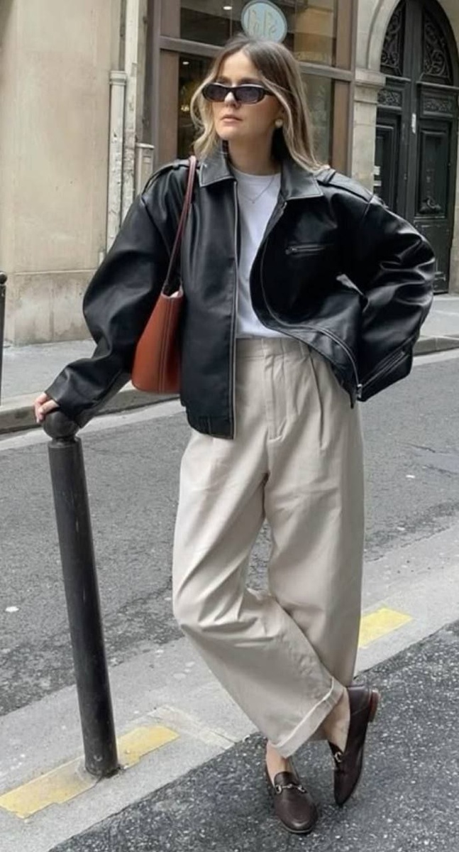 кожаный бомбер Добавляет к образу контраст по стилю. Сочетаем с элегантными юбками, брюками, джинсами. Цвета: черный, оттенки коричневого, вино, хаки. Цвет, длину, ширину, детали можно варьировать, так что каждая сможет найти подходящий для себя вариант.
