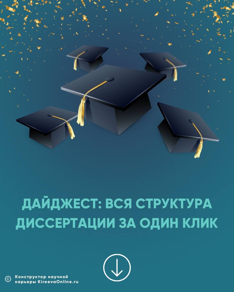 Здравствуйте! Коллеги, наше сообщество в разных каналах суммарно собрало почти 57 000 исследователей! Спасибо вам за доверие, это дает нам много сил развиваться дальше. Напоминаю, что мы есть во всех основных социальных сетях, где делимся полезными материалами, чек-листами и проверенными наработками. MAX https://max.ru/kireeva_science ВКонтакте https://vk.com/kireeva.science Дзен https://dzen.ru/disser YouTube https://youtube.com/@disser_kireeva?si=w6HFbZD73NJa5Ddn А в Telegram на этой неделе мы продолжали разговор о структуре диссертации. Переходите по ссылкам, читайте и сохраняйте материалы, чтобы потом применять в работе. 📝 Почему объект и предмет вечно путают? И как этого не делать Обычно исследователи в этот блок стараются написать что-то максимально нейтральное и универсальное, лишь бы закрыть пункт скорее и идти дальше. Однако если неправильно определить объект и предмет, то работа застрянет… Читать… 📝 Цель и задачи: где диссертация теряет направление Казалось бы, что тут сл