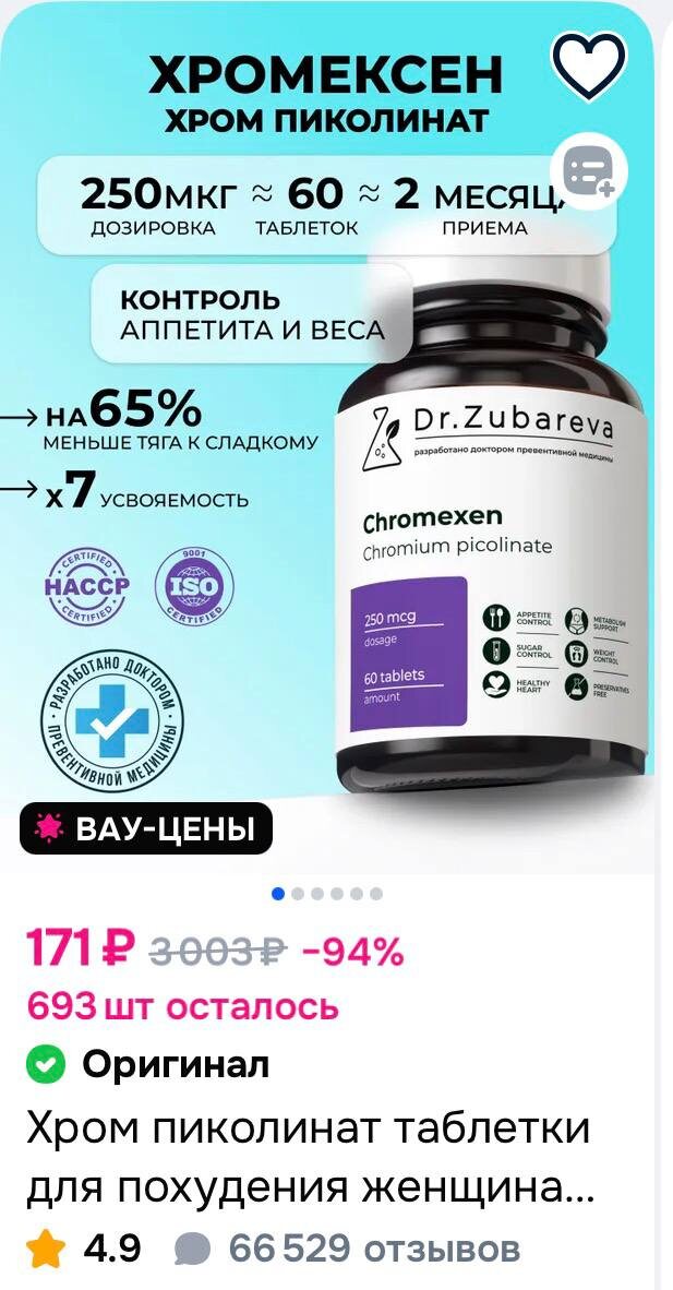 Зубарева / Chromium Picolinate Chromexen Dr Zubareva https://ozon.ru/t/DunKVir #лучшаяцена