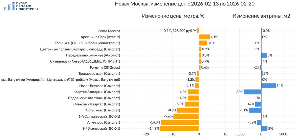Новая Москва, обзор изменения предложения на рынке за неделю