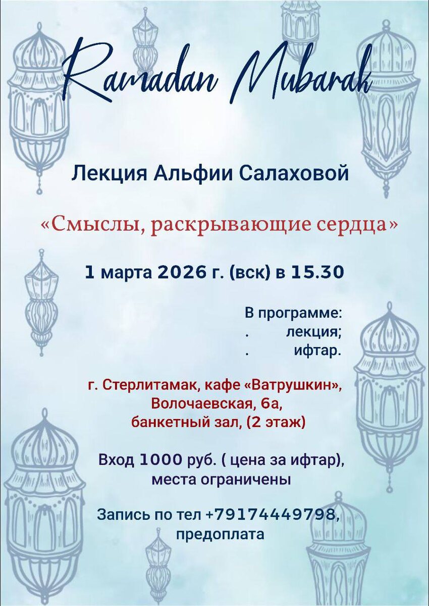 Джума Мубарак! 1 марта в Стерлитамаке проведем урок иншаллах. Поговорим о знаниях и смыслах, которые наполняют сердца и устремляют нас к улучшению и благодарности.