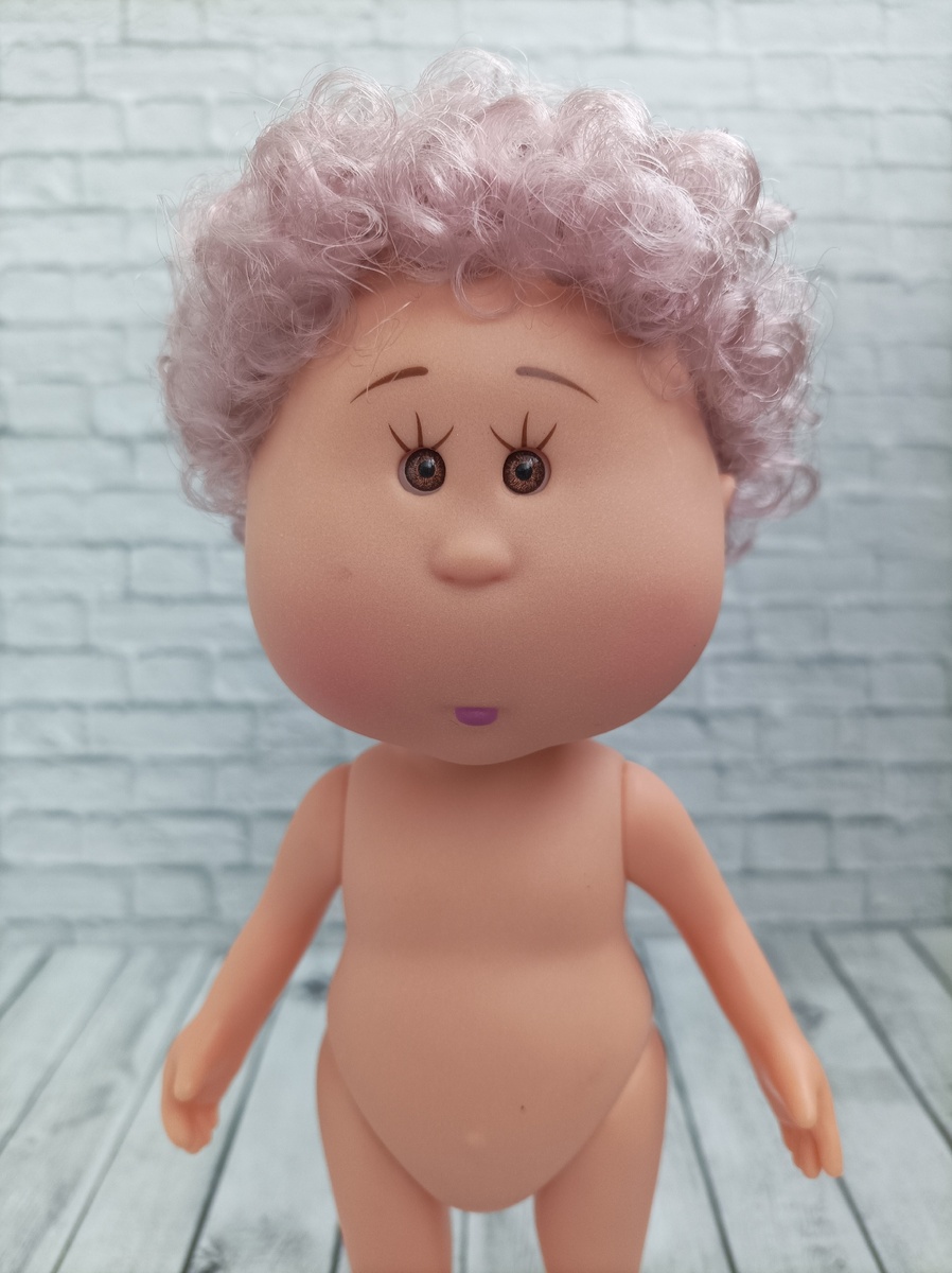 Выбрала куколку с роскошной копной сиреневых кудрей. Красивая, да? Получила... ну, то что получила) В целом, куколка очень даже неплохая. Виниловая, не вонючая. Если не знаешь, не отличишь. Главные отличия. Она чуть выше оригинала, легче, светлее, нет тонировки на коленочках, пяточках, пупочке. Ну и нет запаха ванили. Если нужна игровая кукла для девочки, это подходящий вариант.