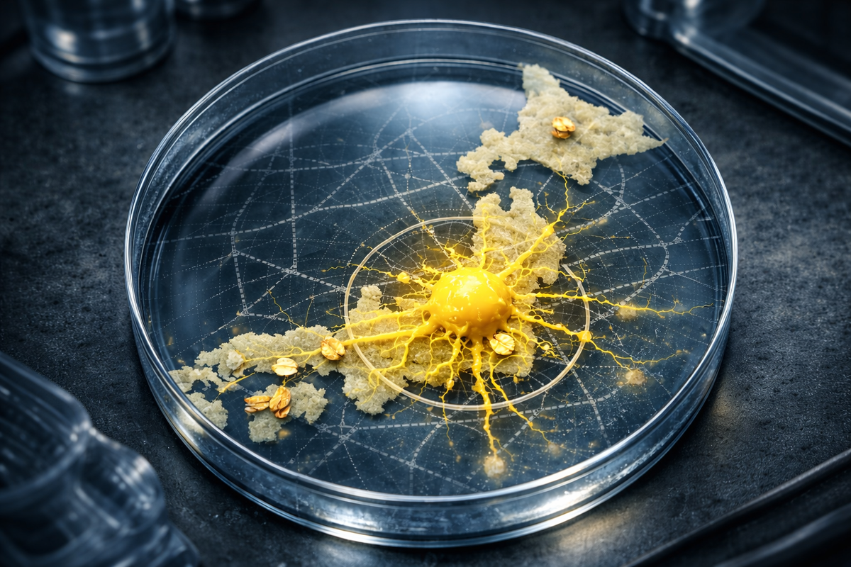 Звали этого гениального проектировщика не Ивана Сато и не Кэндзо Танге. У него вообще не было имени. Он был даже не насекомым, не червем, не растением. Он был просто комком желтой слизи в чашке Петри. Слизевик. Physarum polycephalum — многоголовый. Звучит как имя древнего дракона, но на деле это просто одна большая клетка, которая не знает, что у нее нет мозга, и поэтому живет и решает задачи, которые людям кажутся сложными.