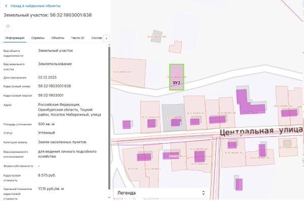 Название: Земельный участок площадью 500 кв.м., с кадастровым номером 56:32:1903001:638