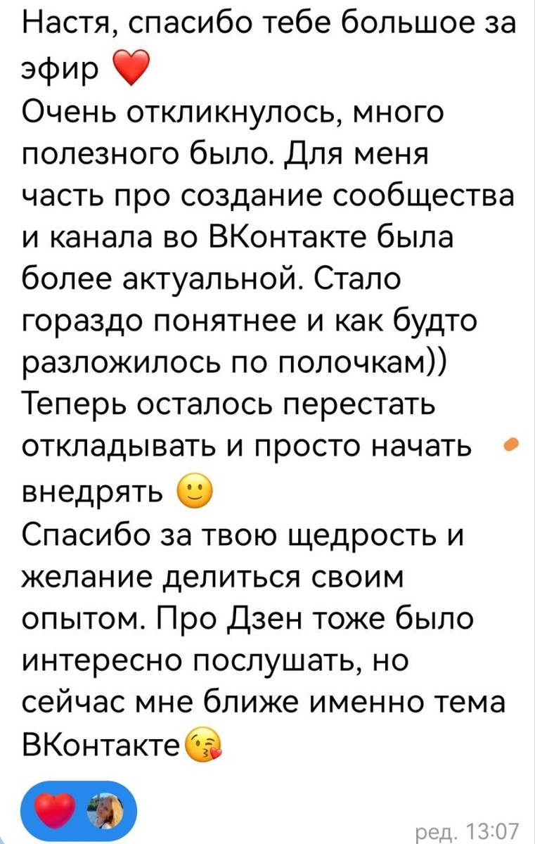 ВК - это платформа, где можно выбирать. Я выбрала сегодня запуск не прямого эфира, а запуск видео чата. Где не только я солирую, но и могу пообщаться с вами и во время ответить на вопросы. А можно бы было сделать прямой эфир, но это уже другая история. ВК правда стараются, развиваются. Каждый раз становится всё лучше и лучше. Главное - правила соблюдать. Дзен тоже посмотрели. Дзен - это большая газета, а вы там журналисты. 🤣 Пока рассказывала, сама нашла свои слабые места, которые можно усилить. Например, моменты от 2022 года, про которые просто забыла. 😅 🤣🤣🤣 Мой внутренний технарь удовлетворен. Теперь можно продолжить и про духовное... Дописать, например, что такое судьба, а то первые два поста дала, а финал не сделала.