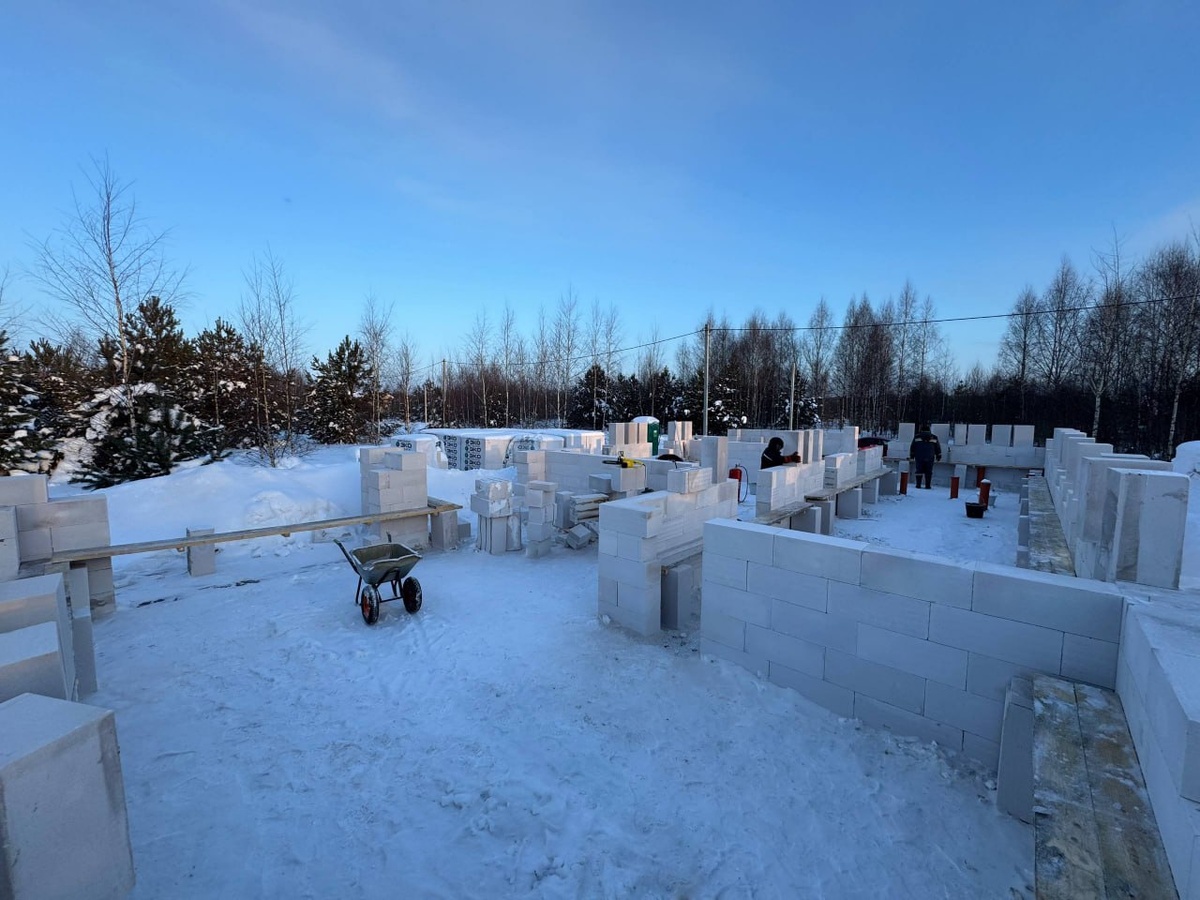 🏗 Ещё недавно на участке были выложены первые ряды газоблока — только начинали формироваться контуры будущего дома. Сегодня картина совсем другая. На текущем этапе: — значительно подняты наружные стены — активно формируются внутренние несущие перегородки — читается планировка помещений — видны габариты и масштаб дома Каждый ряд газоблока меняет восприятие объекта и приближает его к финальному виду. Работы продолжаются в зимний период с соблюдением технологии кладки и постоянным контролем качества.