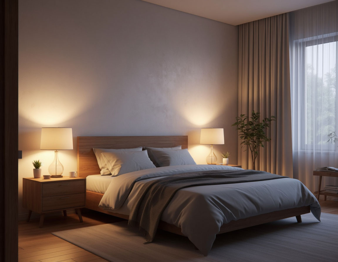 В современном мире, полном стресса и суеты, дом должен быть местом, где можно по‑настоящему расслабиться и восстановить силы. Один из ключевых элементов комфортной атмосферы — правильное освещение. В этой статье расскажем, почему тёплый свет от светильников помогает обрести спокойствие и как грамотно организовать освещение в разных зонах вашего дома. Тёплый свет имеет цветовую температуру в диапазоне 2700–3000 К (кельвинов). Он напоминает мягкое свечение заката или пламени свечи — природные источники света, которые человек подсознательно воспринимает как безопасные и уютные. Научные исследования подтверждают положительное влияние тёплого света на психоэмоциональное состояние: 2. Гостиная. Место для семейных вечеров и встреч с друзьями. Тёплое освещение создаст располагающую к общению атмосферу. Используйте комбинацию общего освещения (люстра с тёплыми лампами) и локальных источников (торшеры, настольные лампы). 3. Столовая и кухня (зона приёма пищи). Тёплый свет делает еду визуально бо