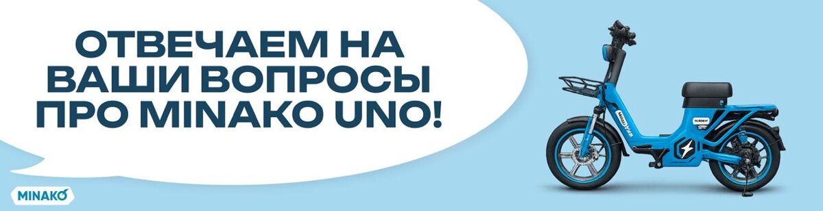 ❓ Продолжаем отвечать на ваши вопросы про Minako UNO, пока обзор вот-вот на подходе "Сколько примерно времени будет длится зарядка?" Ответ: Ориентировочно 7 часов. Вы всегда можете расчитать скорость зарядки для любого аккумулятора сами: берем зарядное устройство и смотрим что на нем написано. Например, если на зарядном устройстве 3А. Делим общую емкость аккумулятора на скорость зарядки. Соответственно, 21 : 3 = 7. "А монитор показывает дневной или общий пробег?" Ответ: Общий пробег ⚠️ "Права на такой электровелосипед нужны?" Ответ: Нет, ведь на моторе установлено ограничение на 240w. "Что залито: дот4 или минеральное масло?" Ответ: Как мы писали в этом посте, на UNO залит дот4. "А usb-порт есть? Чтоб телефон прям от байка заряжать" Ответ: Да, они есть на всех наших моделях электровелосипедов. "Планируете такой же, но хотя бы 45ah?" Ответ: Еще не думали, но спасибо, что спрашиваете! Ваша обратная связь помогает нам становиться лучше) Благодарим каждого за вопросы. Сохраняйте п