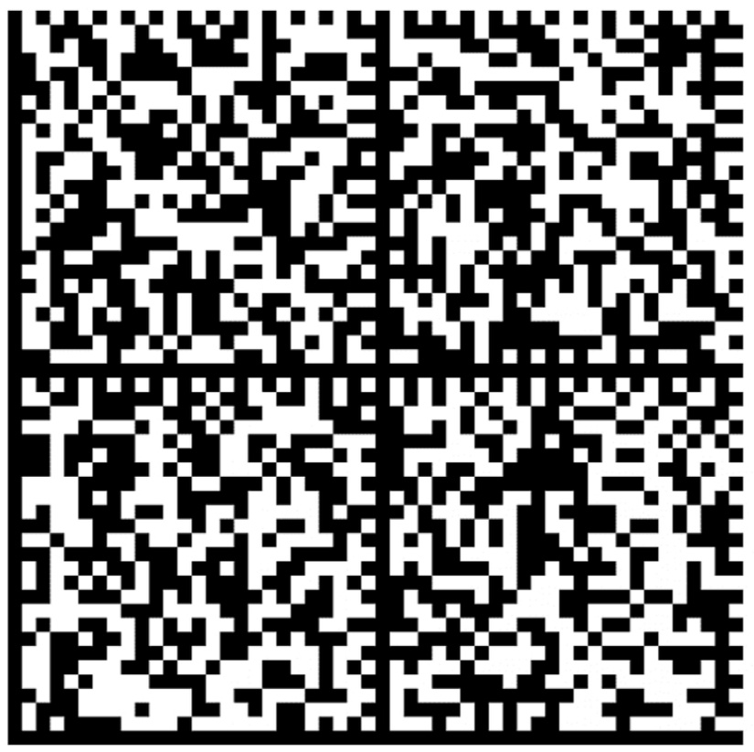 Код Data Matrix похож на QR‑код, но компактнее и способен хранить больше информации даже при повреждении части рисунка. В нём зашифрованы: