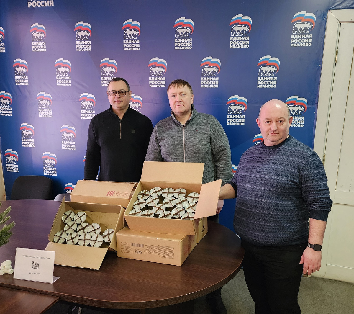 В четвертый раз ко Дню защитника Отечества «Единая Россия» проводит акцию «Тепло для Героя», чтобы подарить участникам СВО немного домашнего тепла. Секретари Первичных отделений города Иваново №35 Евгений Ячменев, №73 Олег Мишагин, №777 Сергей Каманин не остались в стороне и внесли личный вклад в общее дело. В этот раз для бойцов, находящихся на передовой, было изготовлено и передано 100 окопных свечей. «Каждая такая свеча – это не просто источник света и тепла, это частица нашей заботы и благодарность за мирное небо. Своих не бросаем!» - отметил Сергей Каманин.