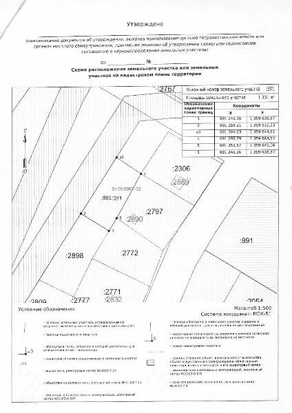 Название: земельный участок с условным номером 51:03:0060102:891:ЗУ1, площадью 1331 кв.м, категория земель - земли населенных пунктов