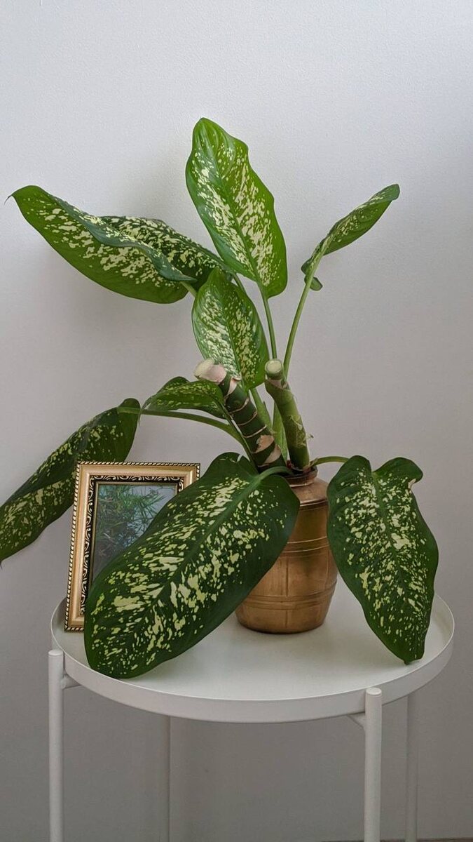 Если интерьер кажется скучным или слишком спокойным, добавьте в него растения с узором на листьях. Пятнистые и пестролистные виды мгновенно делают пространство живым и выразительным. Особенно эффектно они смотрятся в помещениях с однотонными стенами, шторами и мебелью. А вот в интерьерах, где уже много декора, картин и деталей, такие растения лучше использовать точечно, иначе появится визуальный шум. Подборка простых и популярных вариантов 💚Диффенбахия Легко размножается черенками и часто передается от цветовода к цветоводу. Чтобы куст оставался пышным, растение нужно периодически укорачивать. Со временем стебель вытягивается и может требовать опоры. Чувствительна к сухому воздуху. При недостатке влажности кончики листьев подсыхают. 💚Аукуба Эффектное мини деревце с желтыми пятнами на темно зеленых листьях. Хорошо работает как одиночный акцент возле источника света. Отлично подходит для лаконичных интерьеров, где нужен яркий, но живой элемент. 💚Колеус Выращивается ради листьев, а